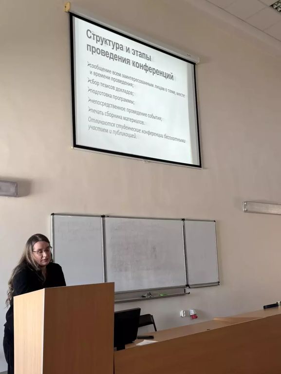 Доклад Л.В. Халтуриной был посвящен вопросам выбора направлений и тем исследований, приведены примеры лучших научно-исследовательских работ студентов, которыми богата история кафедры ТИАрх. Выступление и. о. зав. кафедрой АрхДи, доцента Романа Жуковского было посвящено стандартам подготовки научной статьи, алгоритму работы над публикацией. Затронуты также важные проблемы плагиата и искусственного интеллекта. О типах и формах выступлений на научных конференциях, подготовке тезисов представила подробную информацию доцент Лилия Виноградова.