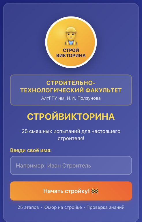 - тематика — строительная (в рамках профориентационной работы);