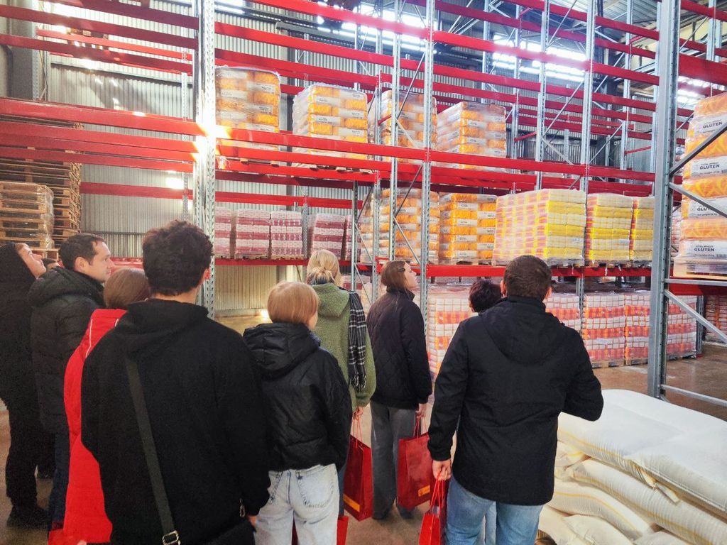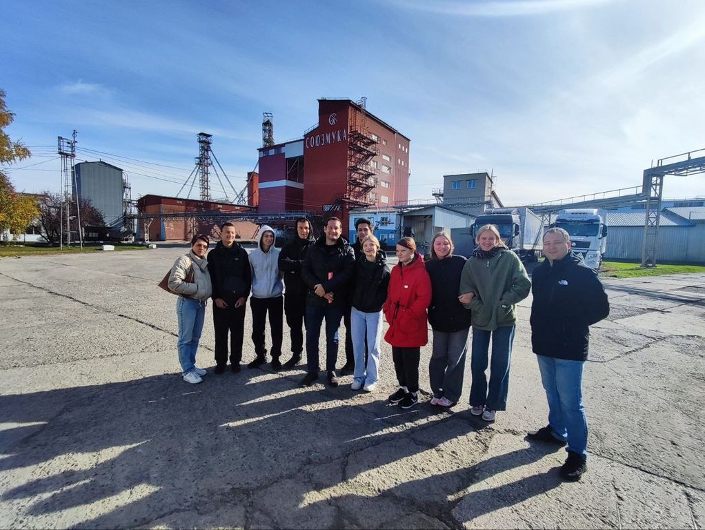 Экскурсию провёл генеральный директор, выпускник АлтГТУ Алексей Данилов, который лично познакомил школьников с полным циклом производства зерновой продукции: от разгрузки сырья до выпуска готовой муки и круп.