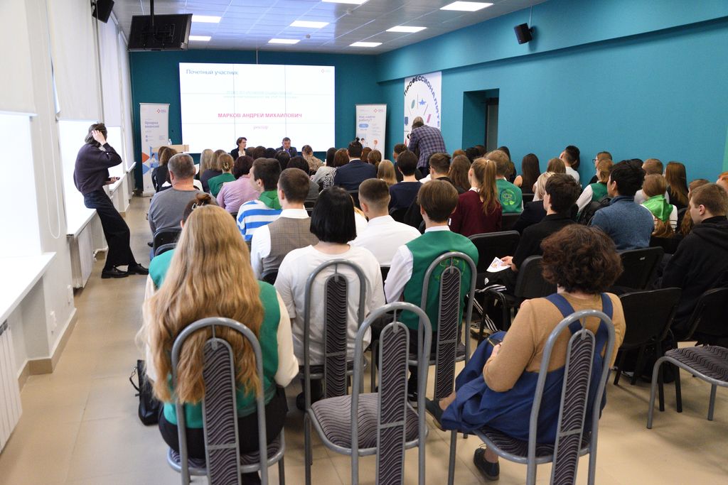 В ходе мероприятия участники познакомились с сервисами платформы «Работа России», где можно не только искать вакансии, но и напрямую общаться с работодателями. Илья Бень, представитель Кадрового центра «Работа России», рассказал о том, как сервис помогает студентам находить первые рабочие места.