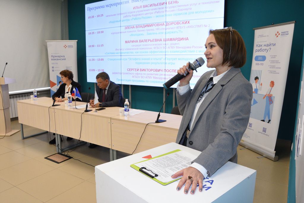 С приветственным словом к студентам обратилась и начальник управления Алтайского края по труду и занятости населения Надежда Капура: «Наша главная задача — помочь вам определить свой профессиональный путь и закрепиться в регионе. Для этого мы создаем стажировочные площадки, помогаем с профориентацией и становимся связующим звеном между будущими специалистами и работодателями. Используйте эту возможность по максимуму. Не стесняйтесь сегодня задавать вопросы о трудоустройстве».