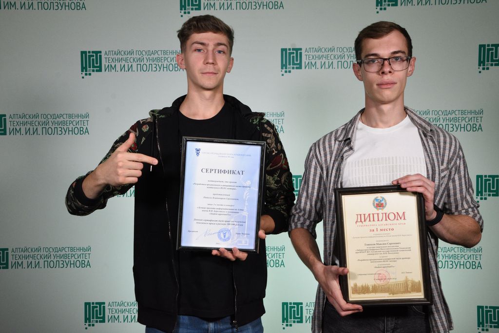 Магистранты факультета информационных технологий АлтГТУ Максим Гонохов и Данил Косихин заняли первое место в краевом конкурсе «Лучшие проекты информатизации на Алтае имени В.И. Берегового».