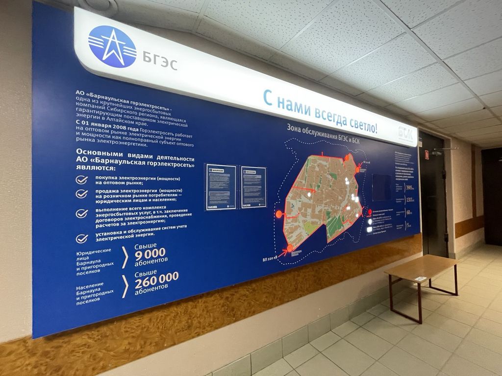 На первом этаже корпуса «Д» ООО «БСК» и АО «Барнаульская горэлектросеть» оборудовали информационный стенд.